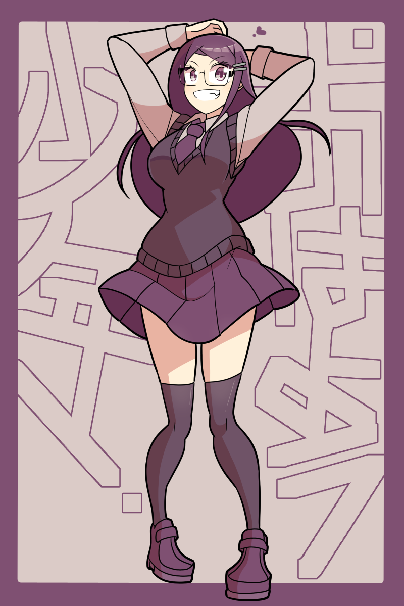 • 黒い長髪、眼鏡、セーター制服。